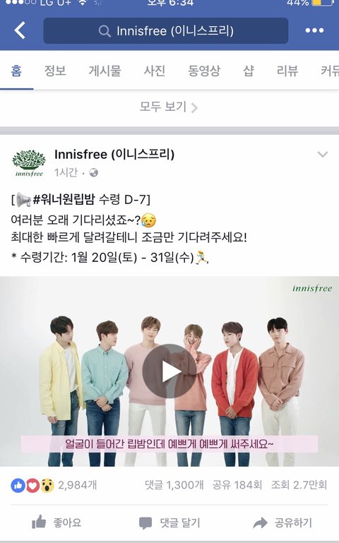 얼굴책 https://www.facebook.com/innisfreeHQ/videos/1847977681881540/