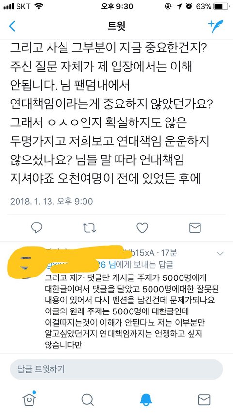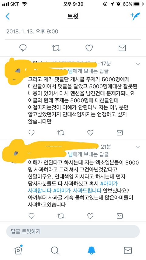 밑에는 4998명 사과하라고 비꼬면서 글쓰고 뭐라하길래