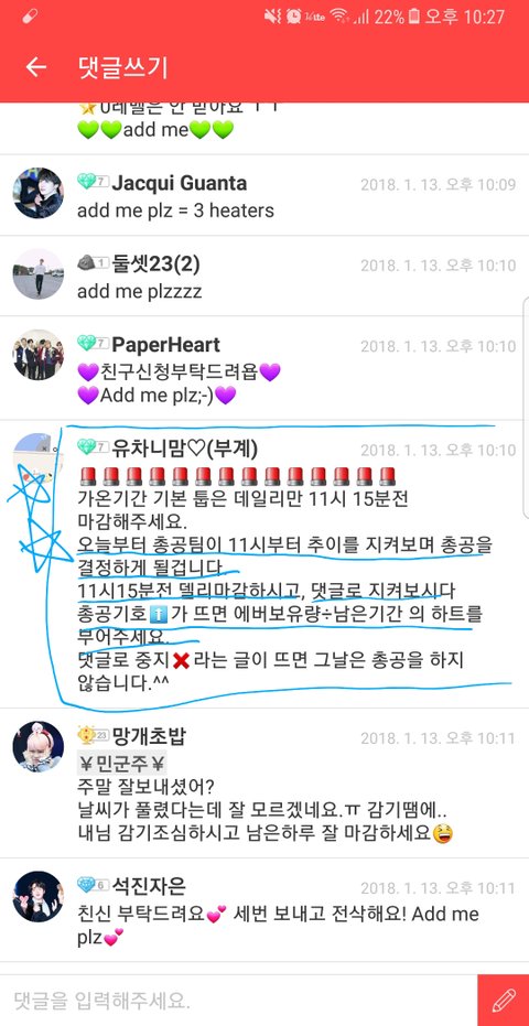 게시물 2번째 공지 댓글 꼭 확인해!!!! 델리 11시 15분전까지 다 붓고 에버는 공지 댓글에 화살표 나오면 전체 하트수÷10한 하트수 부어