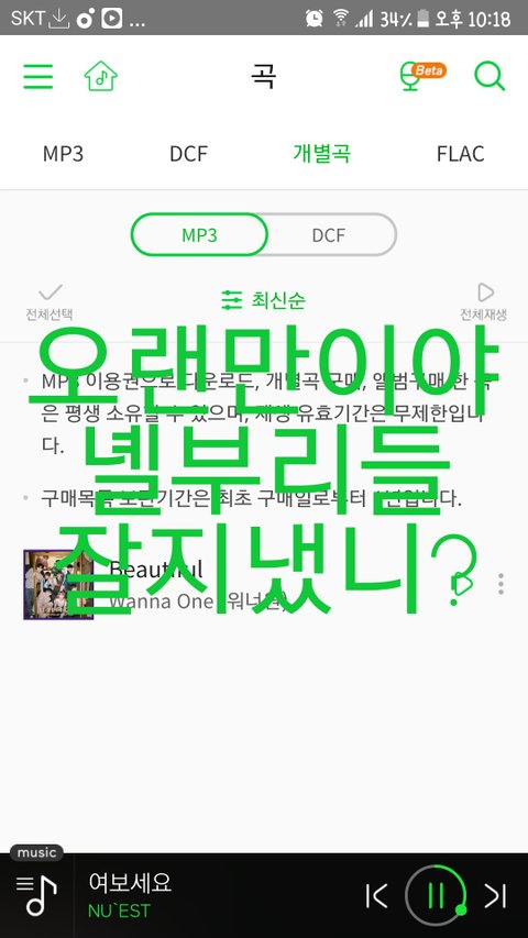 스밍인증 대신 방금 다운로드한 따끈따끈한 곡으로