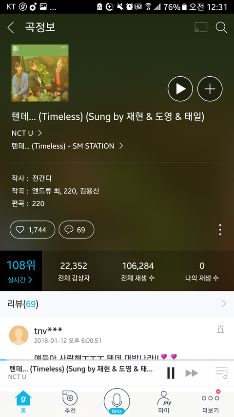 아까 저 밑에글에 무료나눔링크도있으니까 다들 한번만듣자 지금 총공타임이야 ㅠㅠ 좀만 더들으면순위권 가능할텐데....