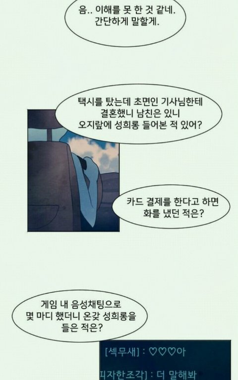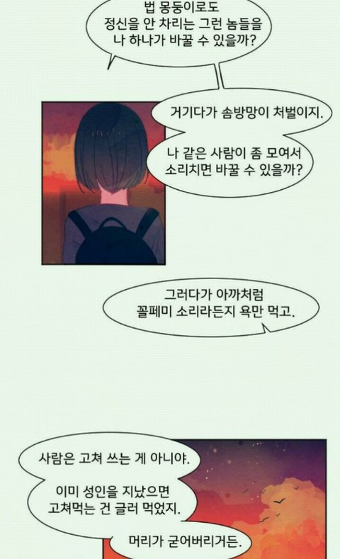 이 만화를 보고 난 후 정말 너무 좋아서 여러사람들한테 추천하고 다녔는데 아직까지도 베도에 있어서 모르는 사람들이 많은것 같아서 모두에게 알리고자 이 소개글을 쓰게 됐다.!주변 한남 반응, 가부장제, 피해자 가해하는 방관자, 피해자 심리 등 만화를 읽다보면 잘 드러나있어서 매우 좋았어