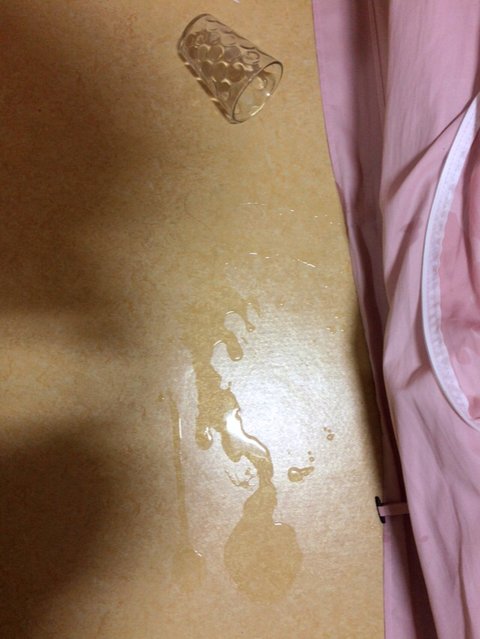나갈 준비를 하며 댄스를 추다가 물을 엎어버림