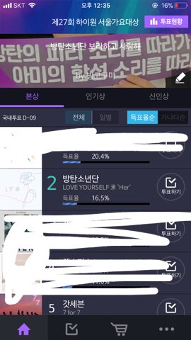 말 그래도 애들한테 대상 주기 싫으면 싫다말해 진짜 팬덤 글 쓸 때 마다 인증도 하는데 왜 투표 격차가 가까워지질않냐고 이건 하는 사람만 계속 한다는거잖아. 1위팀들은 1% 더 늘었났던데 우린 16.5프로 계속 유지하고있드라..