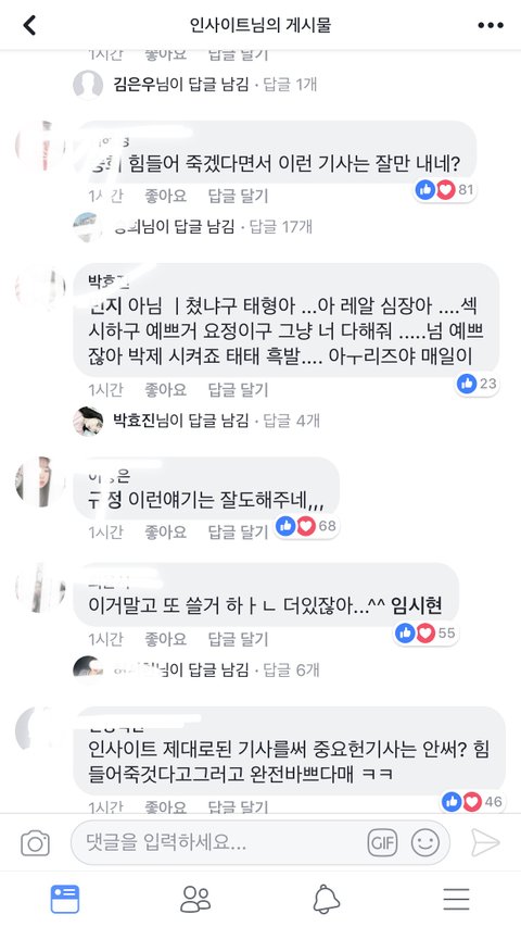 아쉬운데로 기사 댓글로 쿵쾅쿵쾅 대는 중