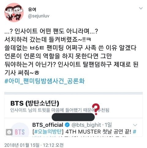 꼭 공론화 되서 !!! 아미일은 물론 여태있던 엑소엘 일도 다 퍼져서 올바른 팬덤문화가 이뤄졌음 하는 바램임 반대 박지 말고 얘기를 해봐 너희 어제오늘 내로남불 염불을 외웠잖아