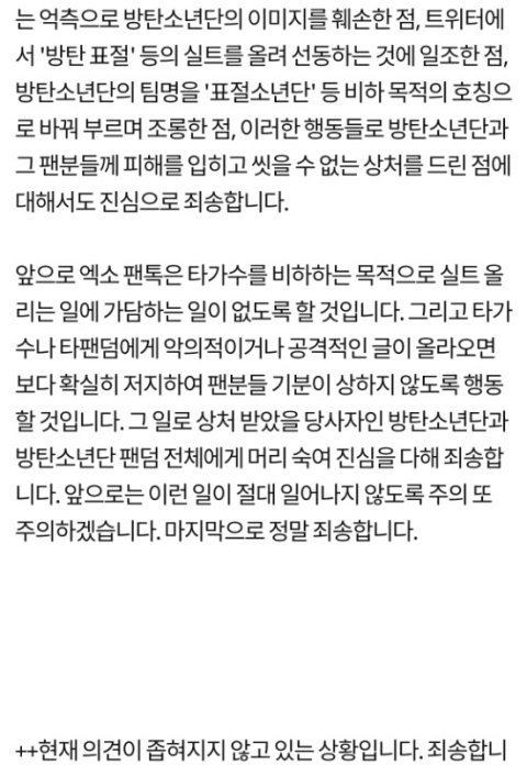 아 찾아왔다 실트사건 우리팬톡이 사과문 쓴거