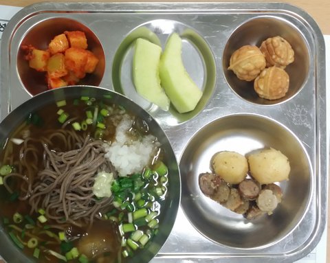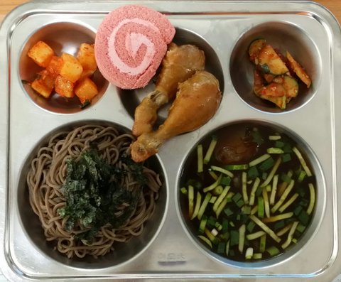 학교에서 직접 만든 간장 닭다리구이.. 우리 귀여운 초등학생 친구들이 닭다리를 두 개 세 개씩 뜯는데... 다음부턴 넉넉하게 해주기로...인기 많았던 메밀국수는 판모밀로 한 번 더