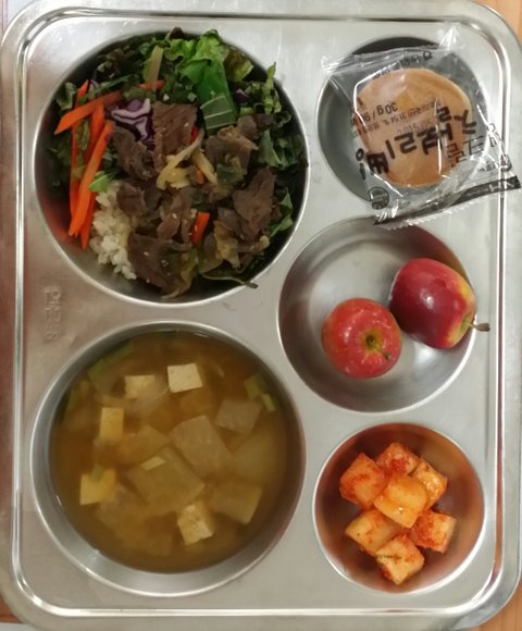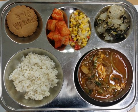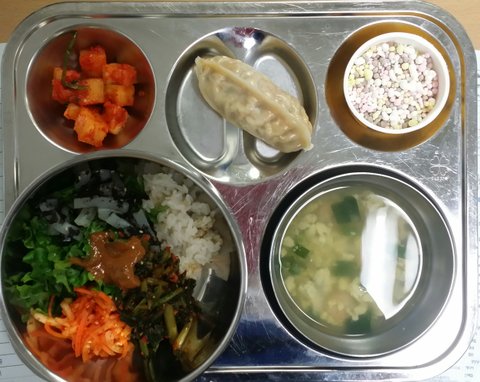 오보베지테리안 식단의 날. 우리 학생들은 곤드레나물 밥을 참 좋아해줘서 너무 예뻤어요 (매주 월요일에는 페스코나 오보락토 베지테리안식을 제공했어요)