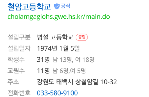 정말 지방에서도 쌩시골인 학교라