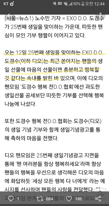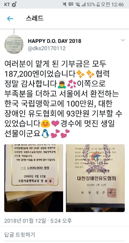 톡선 카이글도 보면 엑소엘은 멤버 생일때마다 기부 엄청 많이하는거같음 보기좋아