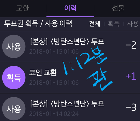 그날 방탄에게 투표한 내역을 올리는것도 좋지만
