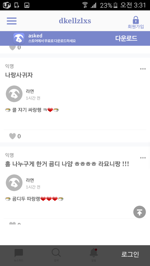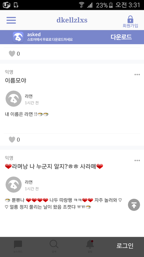 진짜 라면인가 뭔가 걔가 계속