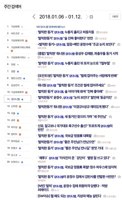 우리녤 주간검색어 등판 total 30주