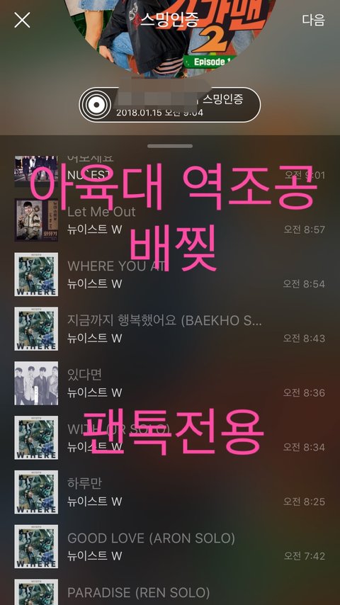 어른폰이라 열곡캡쳐안돼ㅜㅜ 위에 바람사진떴으니까 밑 아홉곡으로캡쳐했어