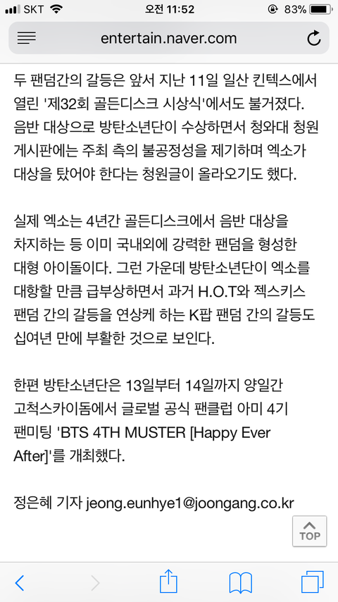 야 중앙1보 정** 분 기사 떴음