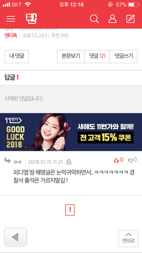 ㅋㅋㅋㅋㅋ 승관이 글에 악플 단 애