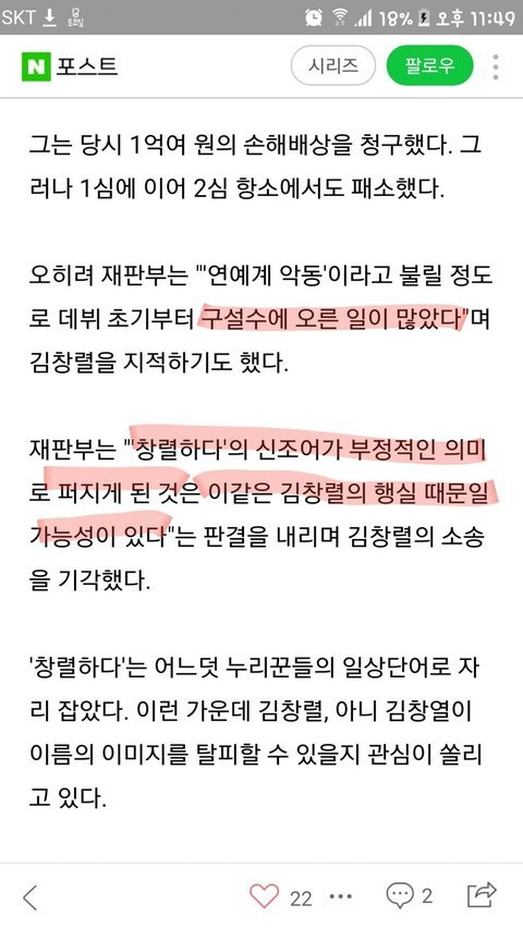 창렬스럽다 로 김창렬이 소송했을때 1심 2심 다 패소 했거든? 그 이유가 뭔지 알아?