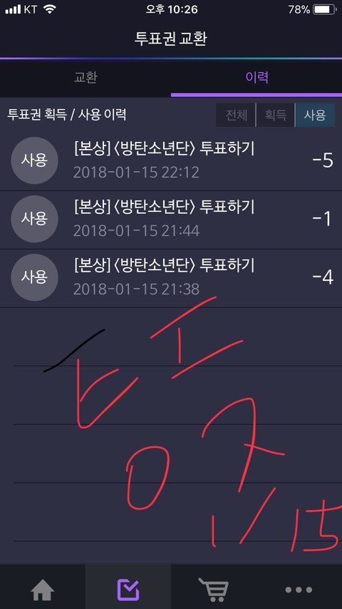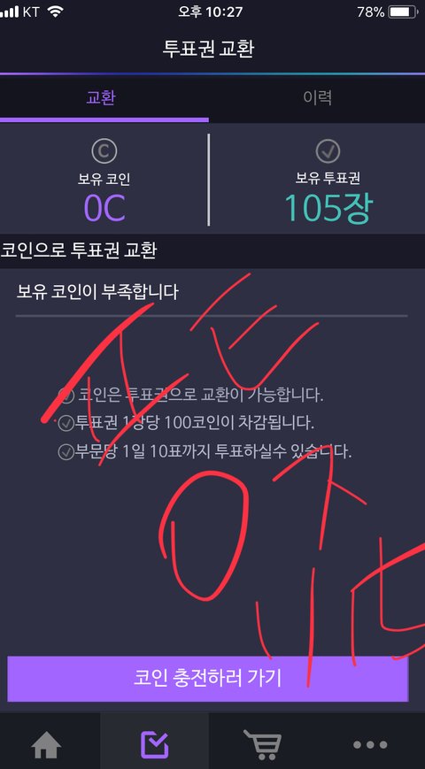 이제 7일 남았는데 투표권 105장이얔ㅋ