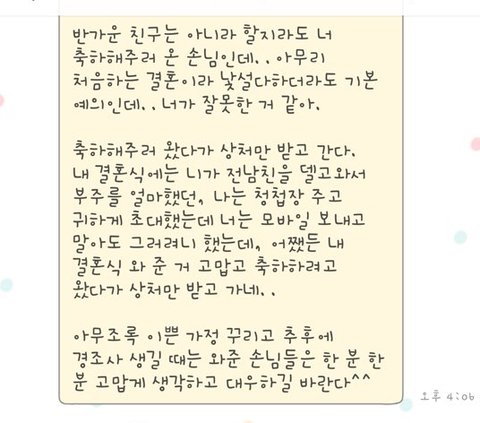 뭐 여기까지는 그렇다 할 수 있음 근데.....근데....근데!!!!!!!!!!!! 축의금을 안냄!!!!! 안내고 밥을 먹음!!!!!!!! 무.전.취.식!!!!!!ㅋㅋㅋ 나이가 30대인데 무.전.취.식 ㅋㅋㅋ