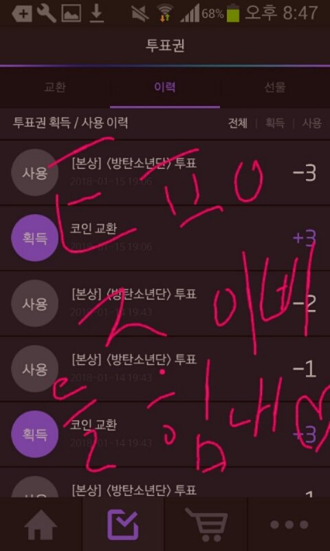 그리고 서*대 본상 투표 할려면 포인트가 필요하잖아 근데 나는 앱깔고 출석체크해도 한계가있더라고 ㅠㅠ 다른 이삐들은 결재를 많이한다던데 나는 부모님이 허락을 안해주셔서 ㅜㅜ 돈없이 많이 하는 방법은 없을까?? 늦은 밤에 투표하느라 바쁠텐테 정말미안해 ㅜㅜ 대신 가르쳐주면 열투표 할께!