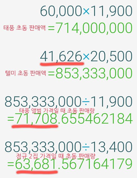 태풍 앨범 가격으로 계산하면 초동 7만장 나옴..ㅜㅜ