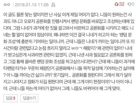 아니 ㅅㅂ 그거 공론화하고싶음 지들이 나중에하던가 ㅋㅋ 일단 지금 이상황을 해결하는건데 다른거 끌고오면 논점흐려지고 이 상황에 초점이 더이상 안맞춰질거아니냐고 그리고 ㅅㅂ 잘못한것들이 니들도 공론화해야해 이러면 기분좋냐? 걍 입닥치고있을것이지
