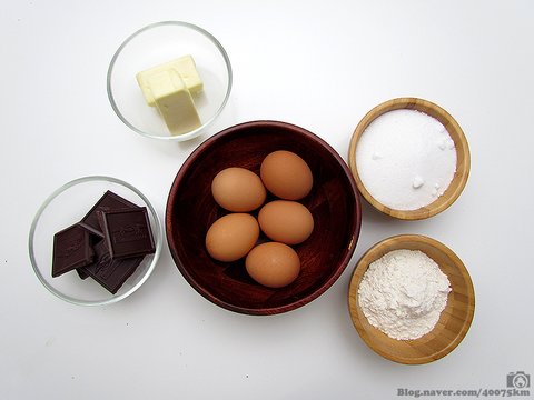 이 케이크를 이루는 다섯가지 주요 원소는 기본적으로 초콜렛, 달걀, 밀가루, 버터, 설탕이 전부입니다.