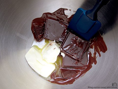 물론 초콜렛과 버터, 생크림을 섞은 가나슈를 만들고 이걸 냉장고에서 적절한 수준으로 식힌 다음 반죽에 넣어주는 번거로움을 감수해야 합니다.