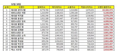 그외 지민 박지훈 옹성우랑은 이백만 넘게 차이나고