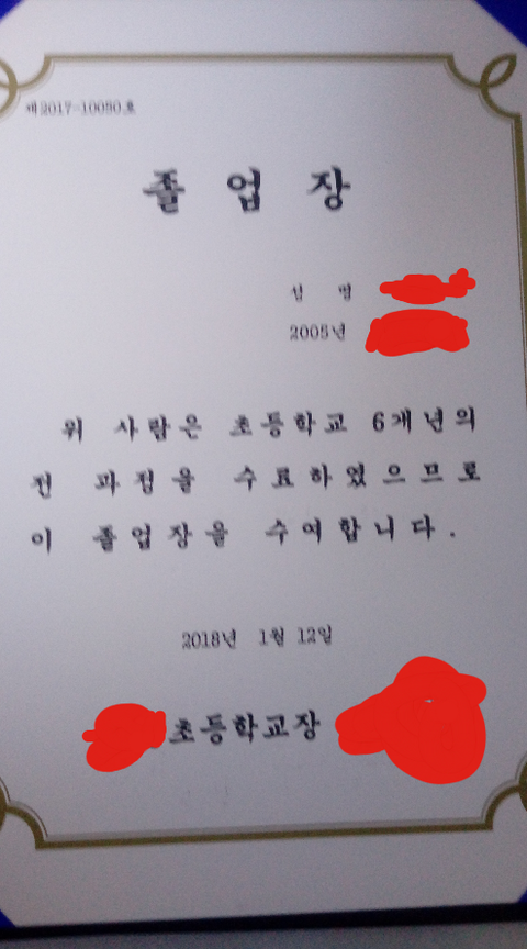 아무튼 그리고 졸업장인증ㅋㅋ2005년생이라 되어있고 밑에 2018년 1월 12일이라고 적혀있음 주작아니야..ㅎ