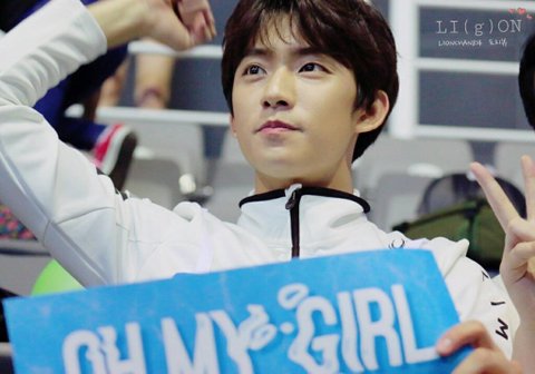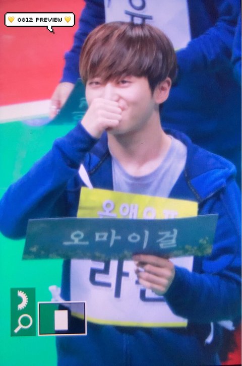 저번 아육대 오마이걸 슬로건 들고있는 공찬 (비원에이포) 이 날 바로는 오마이걸 남자팬이랑 과자 나눠먹음ㅋㅋ