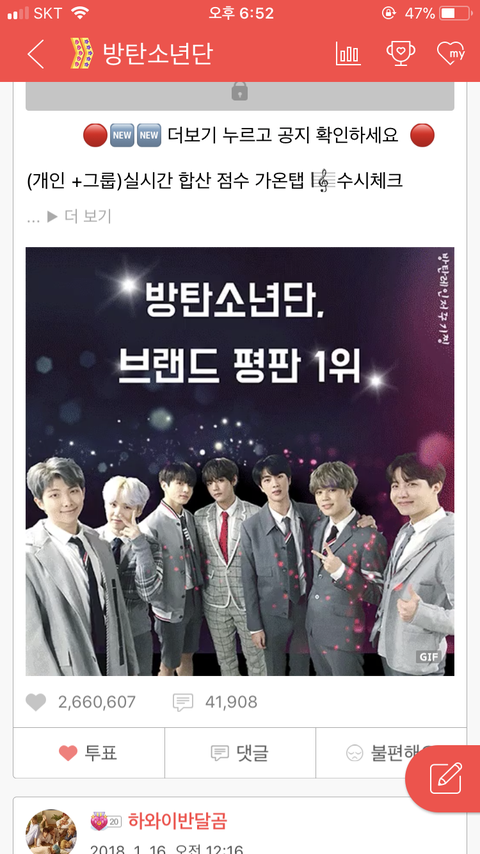 순위에서 투표하지말구 커뮤니티에 들어가서 투표하라는게