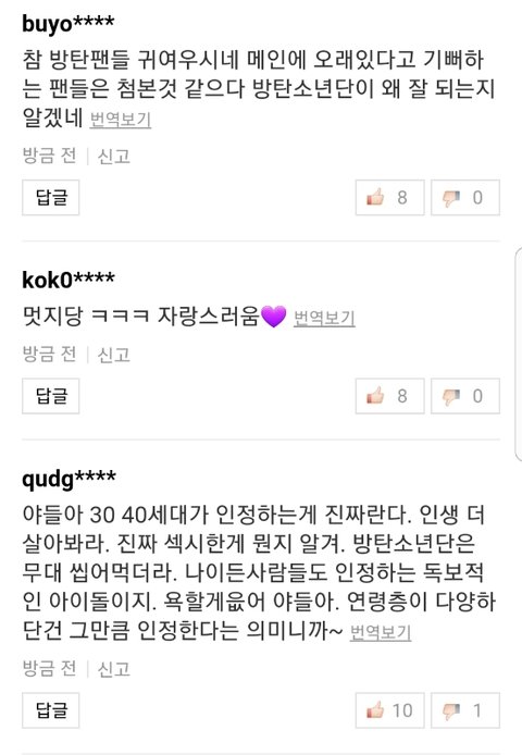 좋아요 수 10000이상은 팬만 누른다고 될 일이 아님 머글 반응이 대체적으로 좋고 전연령층에서 대세임ㅎㅎ 그러니 올해는 서가대도 방탄이 받게 돼있어ㅎ 엑소팬들 엑소 위해서 열심히 하는 건 좋지만 결과는 정해져있는 것 같으니 힘내라구