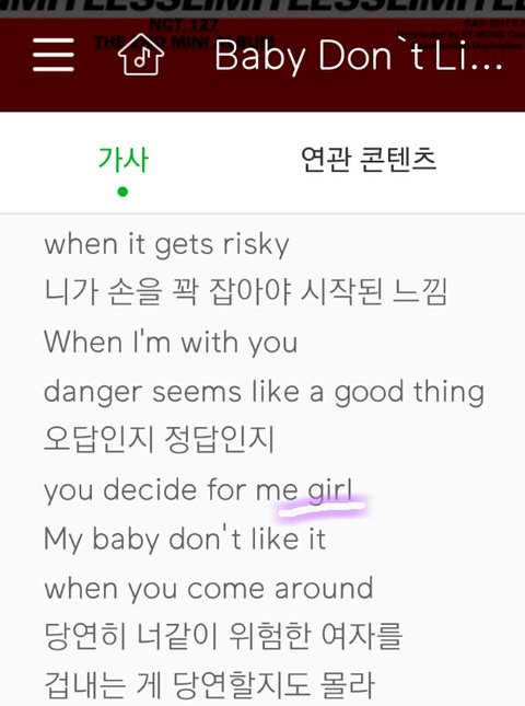 가사마다 정확히 girl 이라고 지칭하고있는데? 올려치기하는척하면서 트페미들이 지껄이는소리하고있네