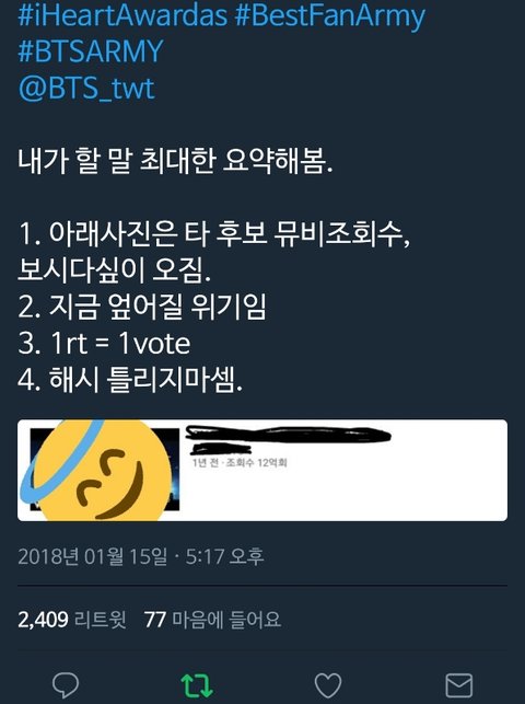 실화냐... 제발 ㅠㅠㅜ 열심ㅅ히하자 저분 조회수 하나로.우리 이길겆같아... 이거 짹만 하는게 아니고 인슷하 얼굴책에서도 하니까 많이 해줘ㅜㅠㅜ애들 상받게 해주자