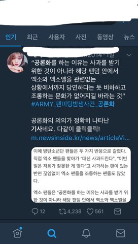 소중한 가수가 피해받은건 아미쪽이 더 크지않나 콘서트vcr보고 충격먹었다 진짜 그리고 에리는x 암이는 o ?어이없
