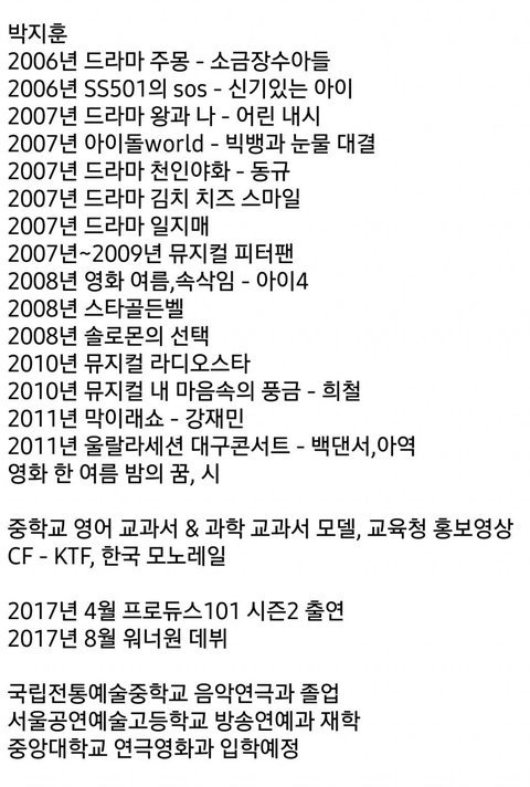 박지훈은 아역이라고 해도 작품 기억에 남는게 없고 그렇다고 티비활동 한 것도 아니고 결론은 워너원 뽑히고 그걸 인정 받은거 아닌가