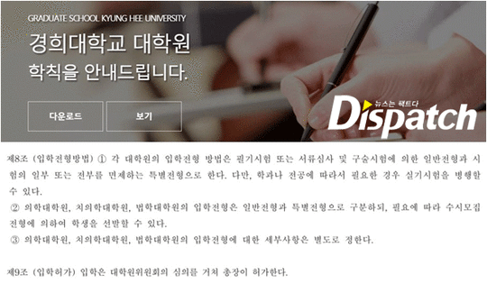 다시, 경희대의 입장이다. 박사 과정의 경우 학생 선발 관련 규정이 다소 애매함을 인정했다. 실제로 박사 과정 선발 규율을 확인하면, <학과에 일임해 학과에서 선발한다> 정도다.