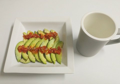 아보카도에 명란무침(명란젓에 다진 파랑 참기름