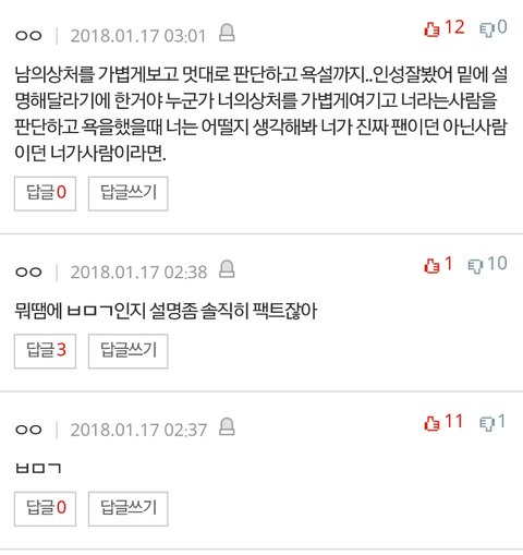 ㅋㅋ요즘 다들 우리얘기나오면 예민해지니까 팬톡와주라..