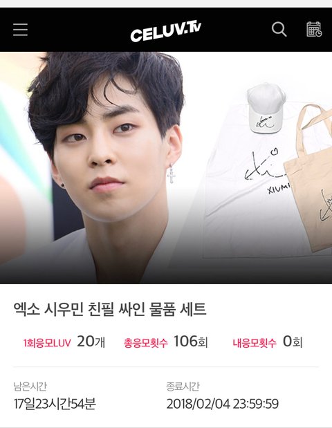 셀럽티비에 시우민 친필 싸인 물품 세트