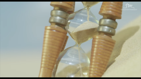 그런데 티저 사진에서는 위에도 밑에도 잘라서 연속성이 있는듯한 화면을 잡고 심지어 밑에는 수 많은 모래 속에 파묻혀있어 어디까지 그 모래시계가 이어져 있는지 알 수없어 여기서 일반 모래시계의미와 달리 여기서 모래시계는 시간은 흐르지만 그 시간이 무한하고 생각했어
