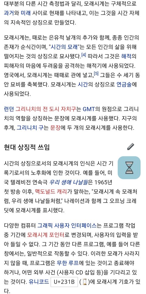 보통 모래시계는 삼단도있긴하지만 두개의 원형이 막혀있는 형태야 모래가 한 쪽으로 다 떨어지는 그런 끝이 있기 때문에 정확한 시간을 나타내지