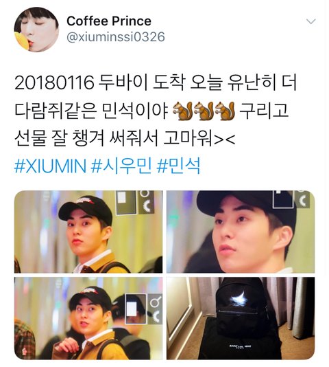 시우민이 두바이에 갈때 메고간 가방이 커피 프린스님의 생선이었어!!