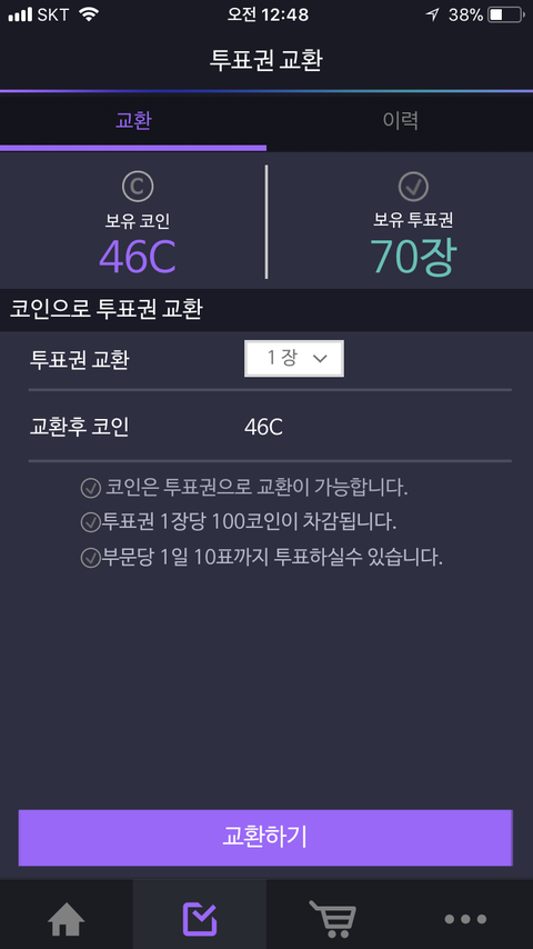 나 지금 투표권 70장 있어