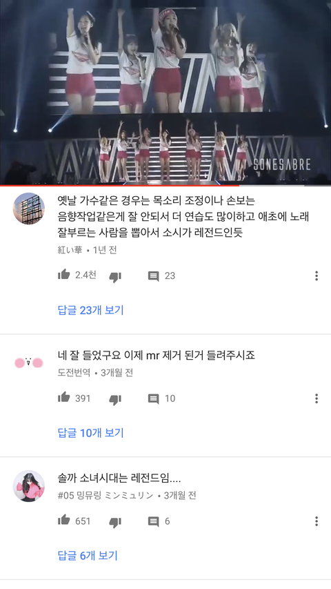 어제 소시 mr제거 영상 너무 잘해서 놀랐다고 글썼었는데