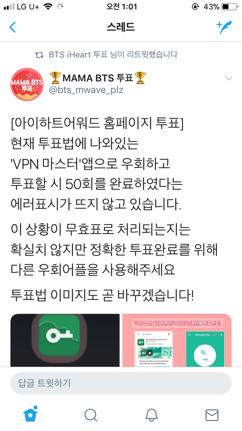 방금 투표독려계정짹에서 본건데 vpn쓰고 아이핱트 웹툽50번이상했는데 제한 안뜨는 이삐들은 다른 vpn프로그램으로 하는게 좋대!