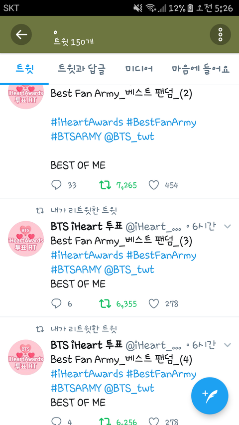 이 투표로 리트윗 광클하게 되니 티켓팅도 더 잘 할 수 있을 거 같지 않아?! 티켓팅 연습이라 생각하고 좋은 마음으로 하장ㅎㅎㅎ애들 상 주려고 하는거니까!!