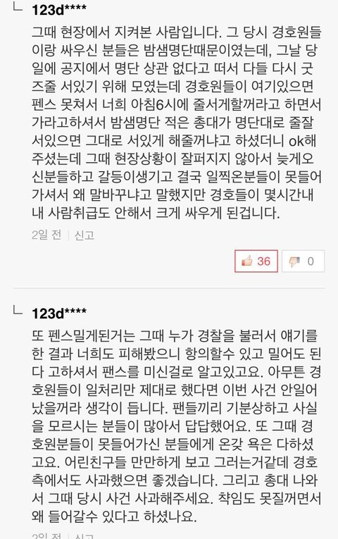 시큐분이 먼저 잘못한거 안보이니? 너희가 껴야할 이유가 없는데?아미분들이 알아서 해결할 일이야 너희가 뭔데?